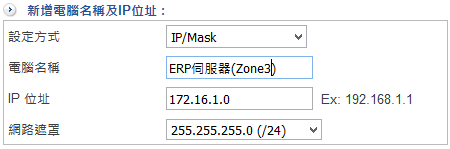 建立 Zone 3 伺服器區的目的 IP 位址表或是區段。