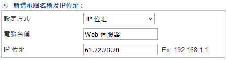 在「管理目標 > 位址表 > 位址表」建立新的伺服器 IP 區段。
