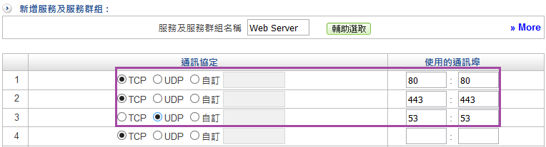 【通訊協定】:通過管制規則的通訊協定,有 TCP/UDP/ICMP 三種協定。
